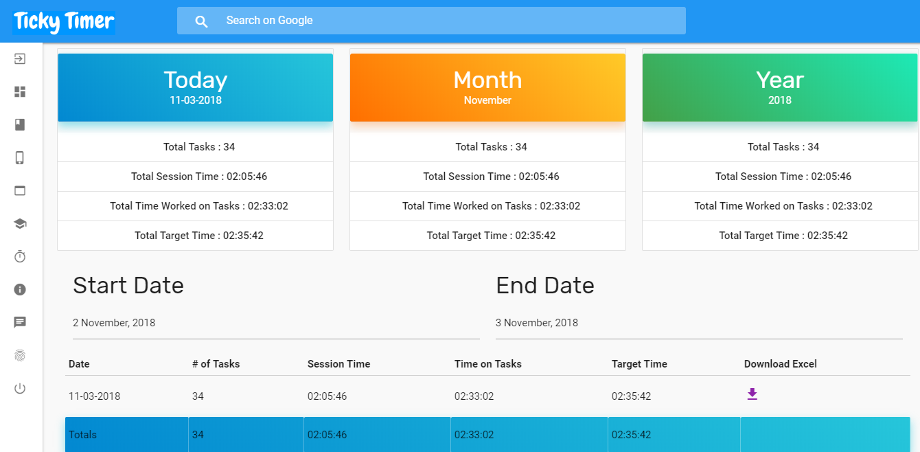 - Every day in between 1-2 AM PST, the server grabs all tasks stored in the database from the perevious day. It sums them up and converts them into a Sum-Total timecard for the day. It then auto generates an excel sheet for you (stored up to 31 days). It then deletes the itemized version of the timecard. If you accidentally clear cache, or are on a different device and want your itemized timecard (assuming 31 days hasn't passed), you may do so by downloading the auto generated excel sheet here: Database Timecards.